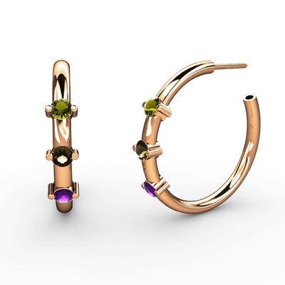Ametist, dumanlı kuvars ve peridot 14 ayar rose altın küpe