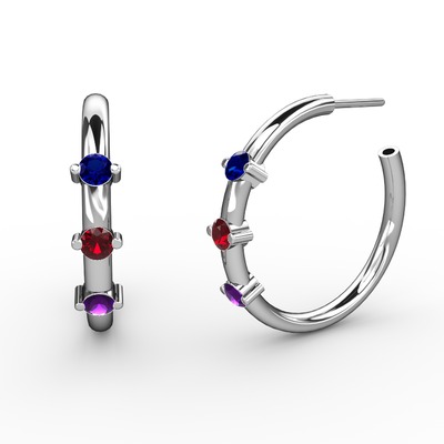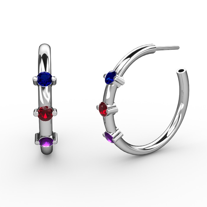 Ametist, garnet ve lab safir 925 ayar gümüş küpe