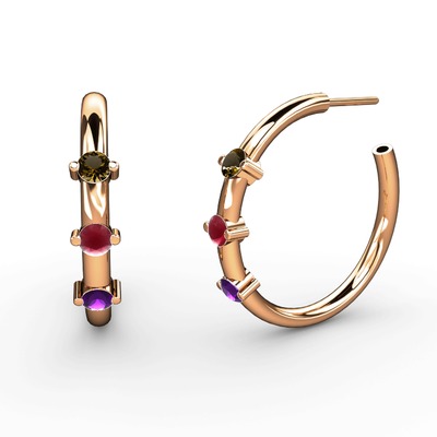 Ametist, kök yakut ve dumanlı kuvars 14 ayar rose altın küpe