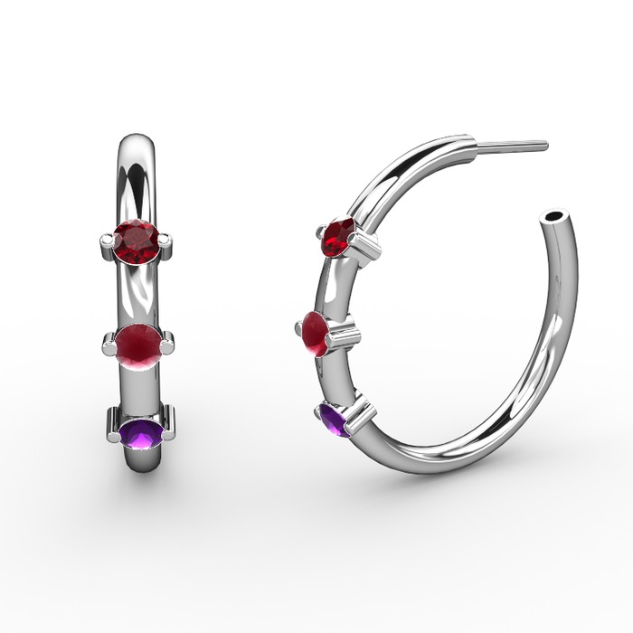 Ametist, kök yakut ve garnet 18 ayar beyaz altın küpe