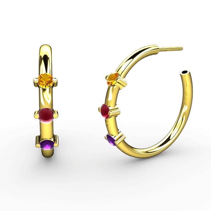 Ametist, kök yakut ve sitrin 925 ayar altın kaplama gümüş küpe