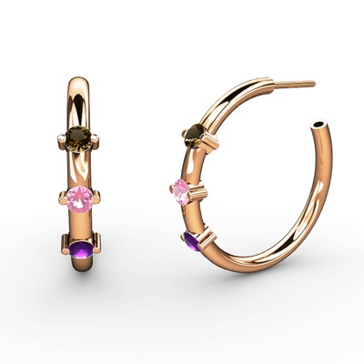 Ametist, pembe kuvars ve dumanlı kuvars 925 ayar rose altın kaplama gümüş küpe