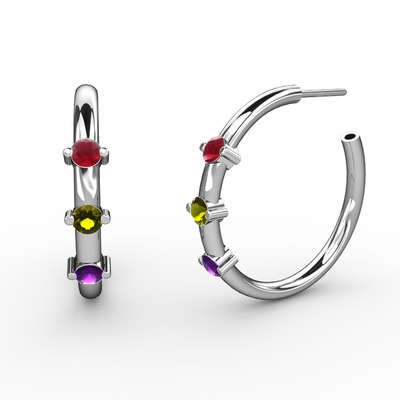 Ametist, peridot ve kök yakut 14 ayar beyaz altın küpe