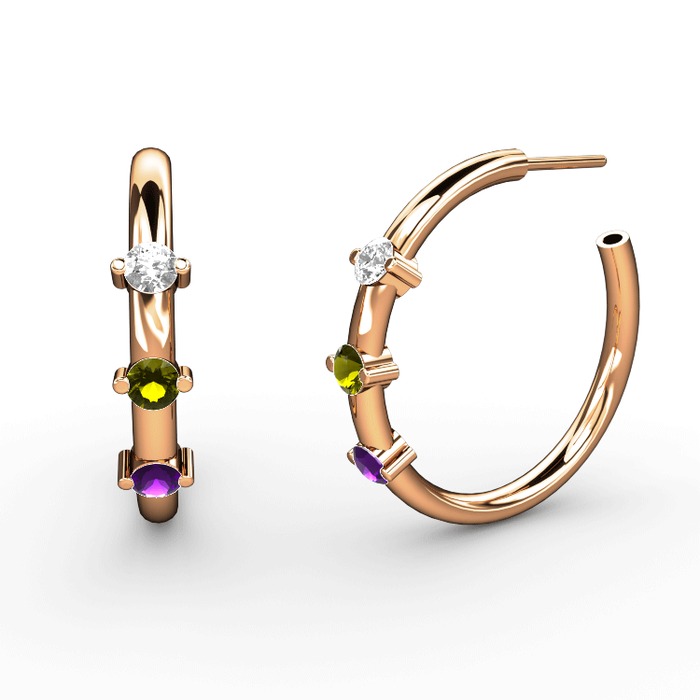 Ametist, peridot ve swarovski 925 ayar rose altın kaplama gümüş küpe