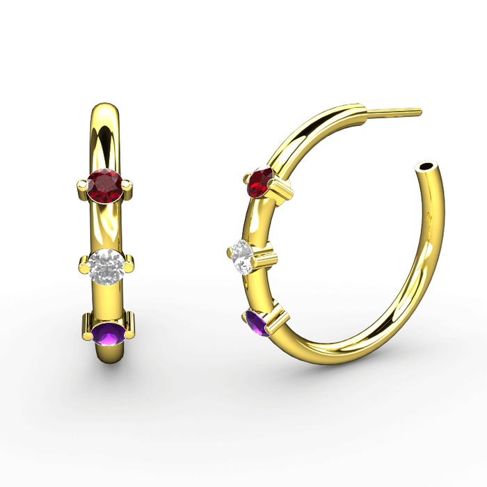 Ametist, pırlanta ve garnet 14 ayar altın küpe (0.22 karat)