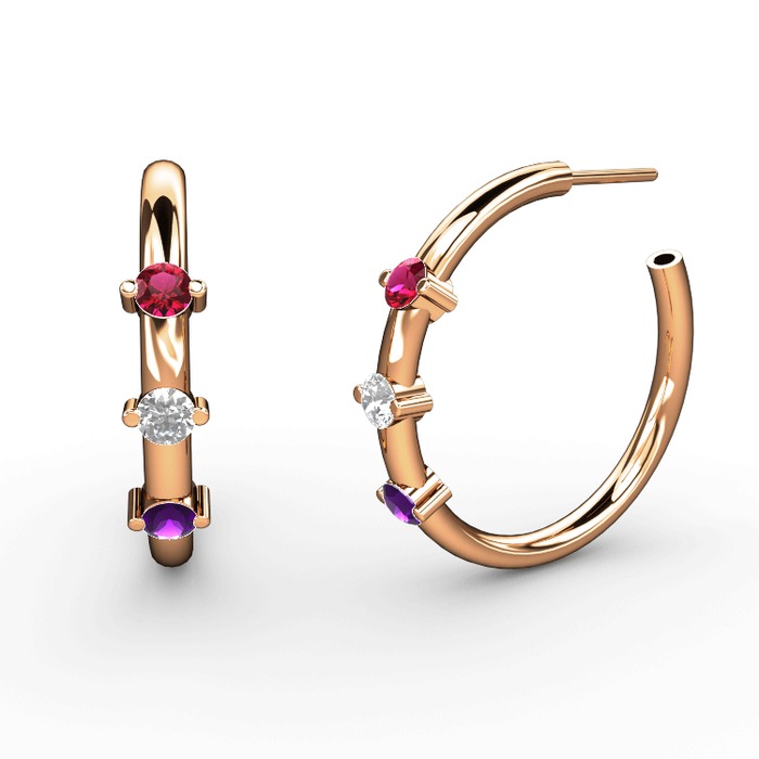 Ametist, pırlanta ve rodolit garnet 14 ayar rose altın küpe (0.22 karat)