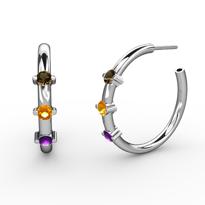 Ametist, sitrin ve dumanlı kuvars 18 ayar beyaz altın küpe