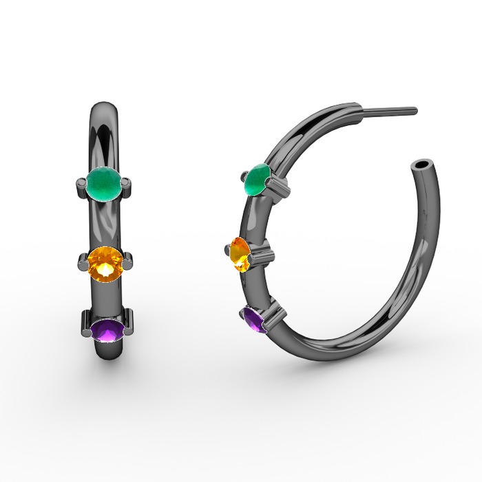 Ametist, sitrin ve kök zümrüt 925 ayar siyah rodyum kaplama gümüş küpe
