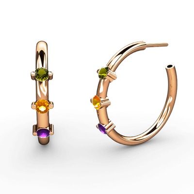 Ametist, sitrin ve peridot 8 ayar rose altın küpe