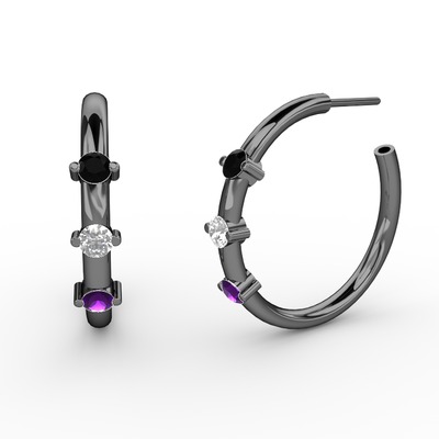 Ametist, swarovski ve siyah zirkon 925 ayar siyah rodyum kaplama gümüş küpe