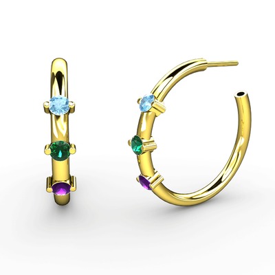 Ametist, yeşil kuvars ve akuamarin 18 ayar altın küpe