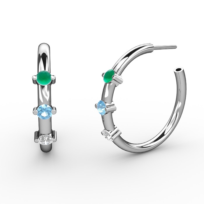 Beyaz zirkon, akuamarin ve kök zümrüt 14 ayar beyaz altın küpe