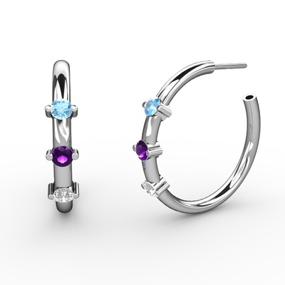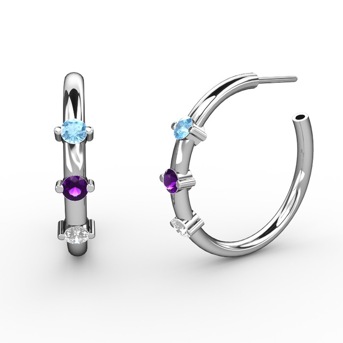 Beyaz zirkon, ametist ve akuamarin 8 ayar beyaz altın küpe