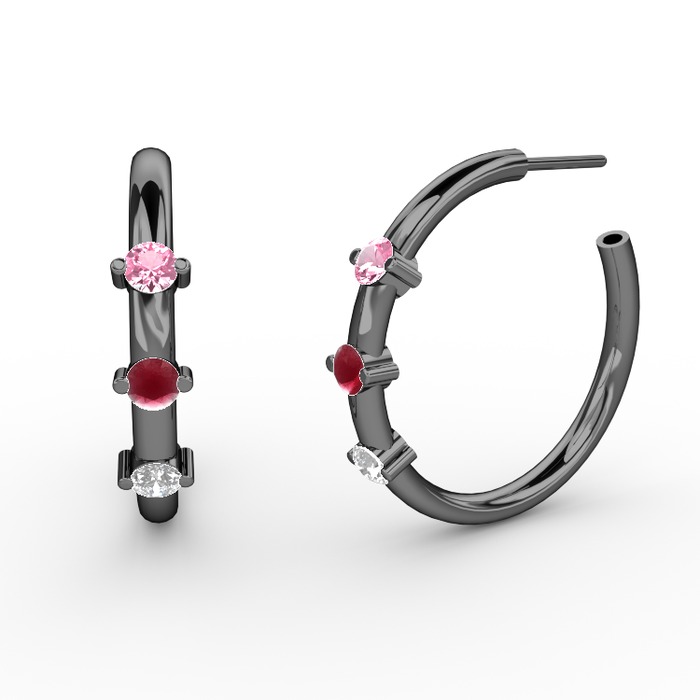 Beyaz zirkon, kök yakut ve pembe kuvars 925 ayar siyah rodyum kaplama gümüş küpe