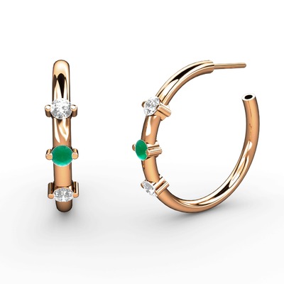 Beyaz zirkon, kök zümrüt ve swarovski 925 ayar rose altın kaplama gümüş küpe
