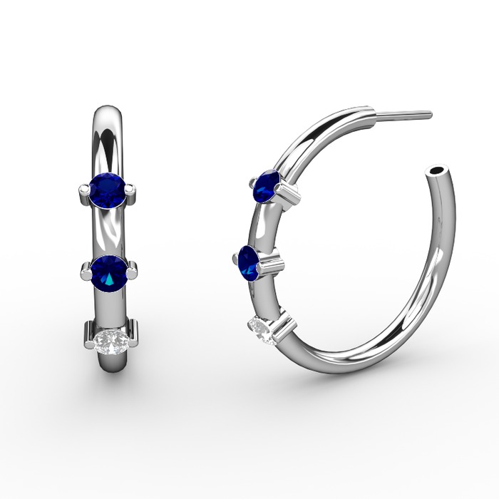 Beyaz zirkon ve lab safir 925 ayar gümüş küpe