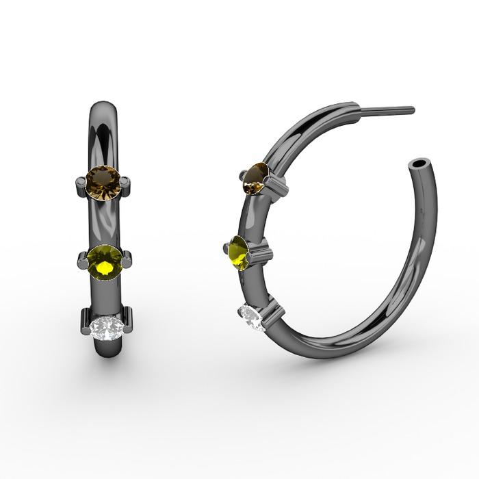 Beyaz zirkon, peridot ve dumanlı kuvars 925 ayar siyah rodyum kaplama gümüş küpe