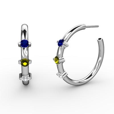 Beyaz zirkon, peridot ve lab safir 18 ayar beyaz altın küpe