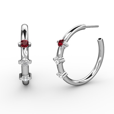 Beyaz zirkon, pırlanta ve garnet 14 ayar beyaz altın küpe (0.22 karat)