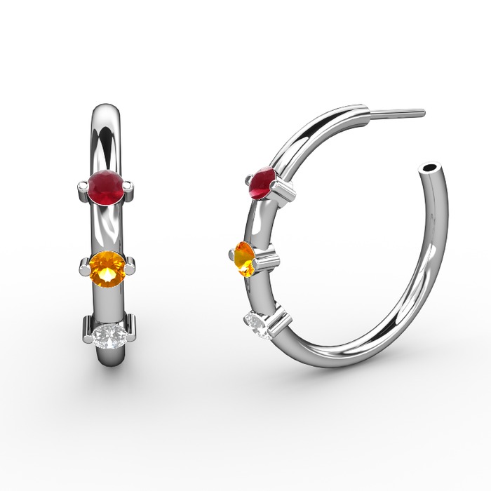 Beyaz zirkon, sitrin ve kök yakut 14 ayar beyaz altın küpe