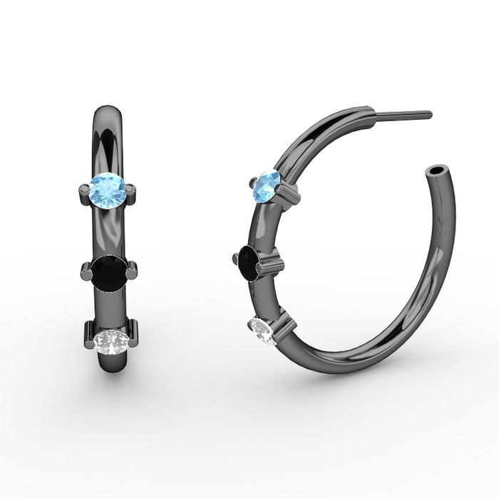 Beyaz zirkon, siyah zirkon ve akuamarin 925 ayar siyah rodyum kaplama gümüş küpe