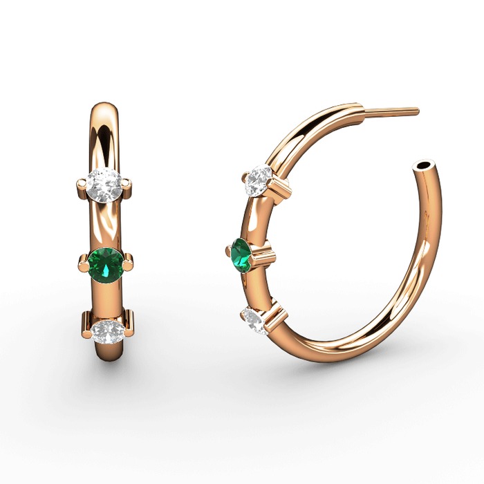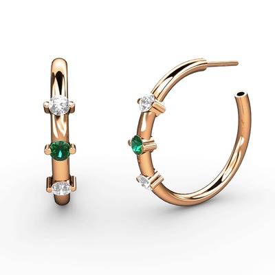 Beyaz zirkon, yeşil kuvars ve pırlanta 925 ayar rose altın kaplama gümüş küpe (0.22 karat)