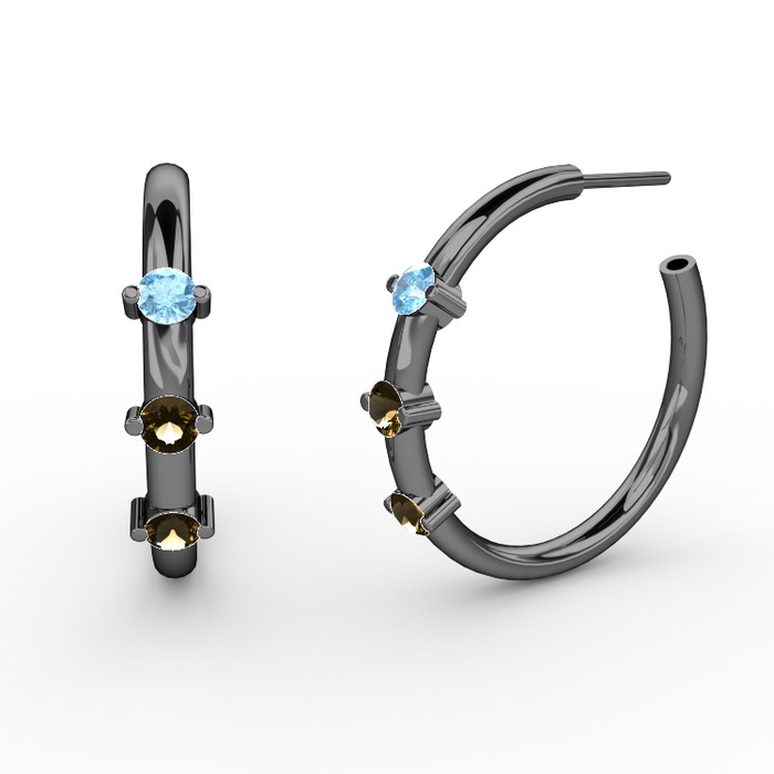 Dumanlı kuvars ve akuamarin 925 ayar siyah rodyum kaplama gümüş küpe