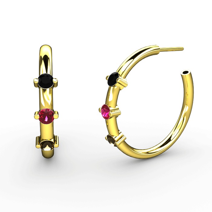 Dumanlı kuvars, rodolit garnet ve siyah zirkon 8 ayar altın küpe