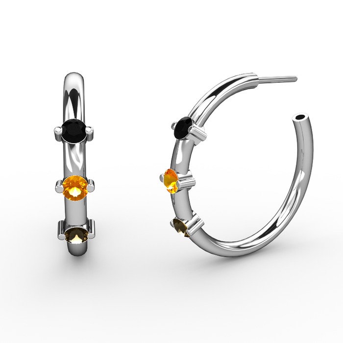 Dumanlı kuvars, sitrin ve siyah zirkon 14 ayar beyaz altın küpe
