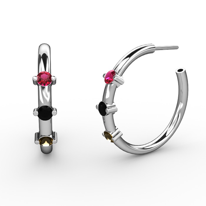 Dumanlı kuvars, siyah zirkon ve rodolit garnet 925 ayar gümüş küpe