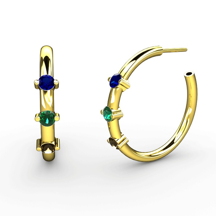 Dumanlı kuvars, yeşil kuvars ve lab safir 8 ayar altın küpe