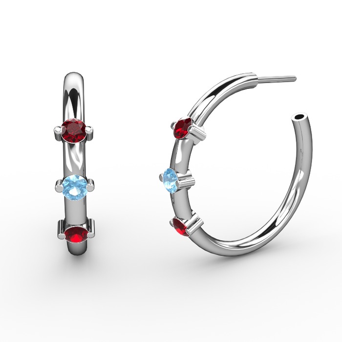 Garnet ve akuamarin 8 ayar beyaz altın küpe
