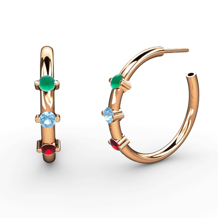 Garnet, akuamarin ve kök zümrüt 925 ayar rose altın kaplama gümüş küpe