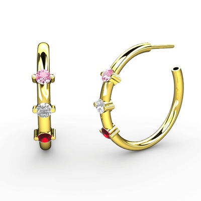 Garnet, beyaz zirkon ve pembe kuvars 18 ayar altın küpe