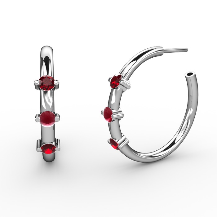 Garnet ve kök yakut 18 ayar beyaz altın küpe