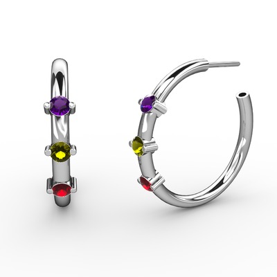 Garnet, peridot ve ametist 925 ayar gümüş küpe