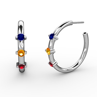 Garnet, sitrin ve lab safir 14 ayar beyaz altın küpe