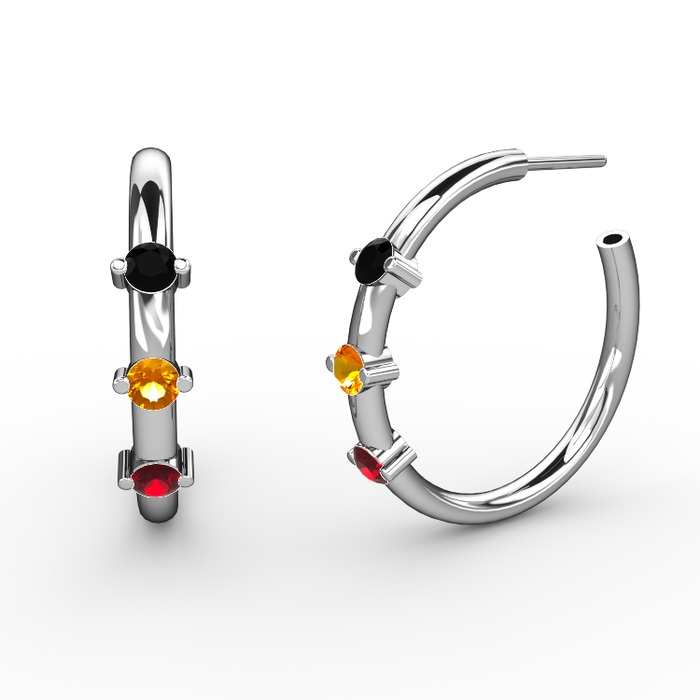 Garnet, sitrin ve siyah zirkon 14 ayar beyaz altın küpe