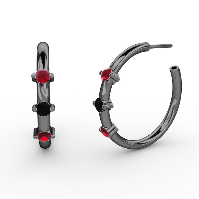 Garnet, siyah zirkon ve kök yakut 925 ayar siyah rodyum kaplama gümüş küpe