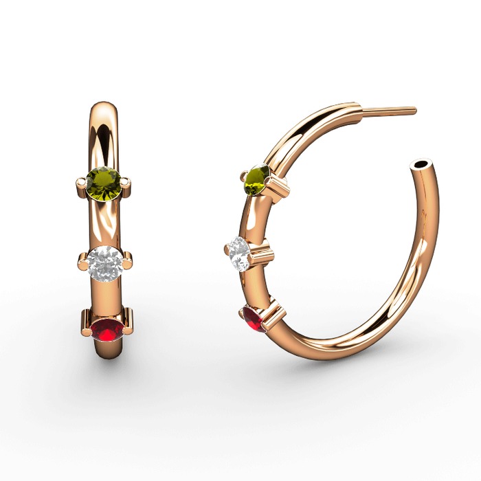 Garnet, swarovski ve peridot 18 ayar rose altın küpe
