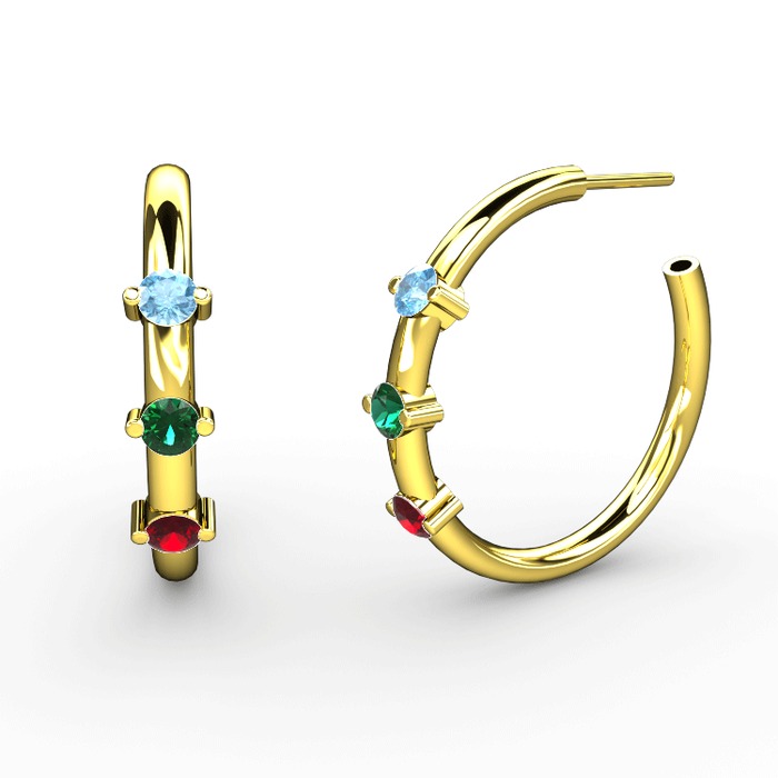 Garnet, yeşil kuvars ve akuamarin 18 ayar altın küpe