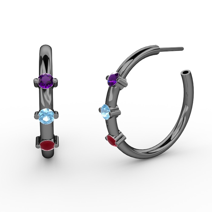 Kök yakut, akuamarin ve ametist 925 ayar siyah rodyum kaplama gümüş küpe