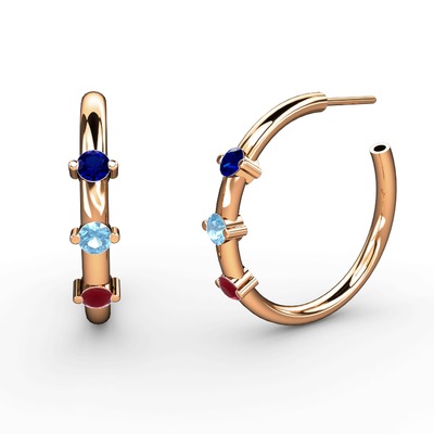 Kök yakut, akuamarin ve lab safir 8 ayar rose altın küpe