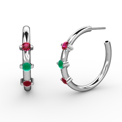 Kök yakut, kök zümrüt ve rodolit garnet 18 ayar beyaz altın küpe