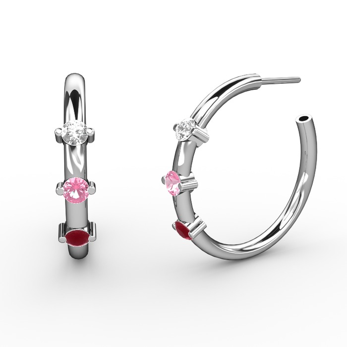 Kök yakut, pembe kuvars ve swarovski 925 ayar gümüş küpe