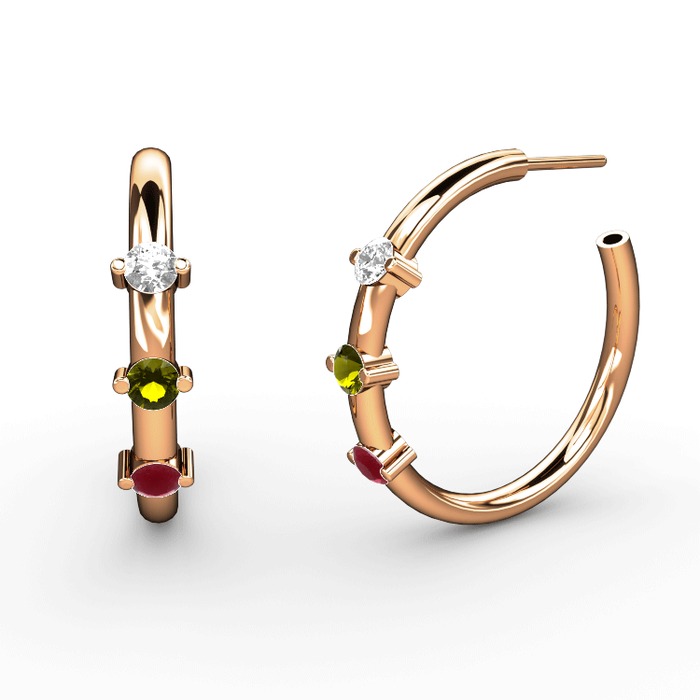 Kök yakut, peridot ve pırlanta 18 ayar rose altın küpe (0.22 karat)