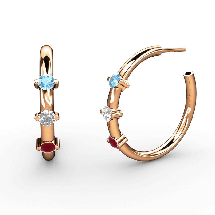 Kök yakut, pırlanta ve akuamarin 14 ayar rose altın küpe (0.22 karat)