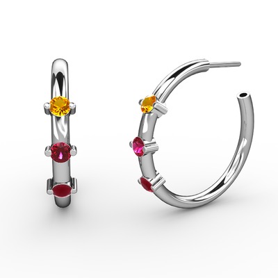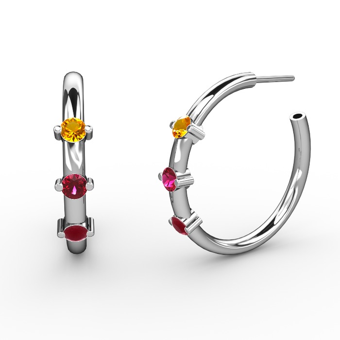Kök yakut, rodolit garnet ve sitrin 18 ayar beyaz altın küpe