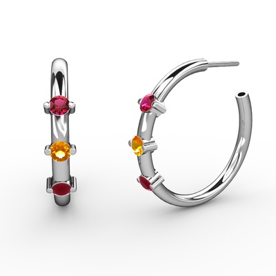 Kök yakut, sitrin ve rodolit garnet 18 ayar beyaz altın küpe