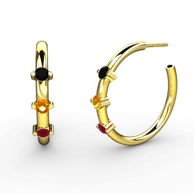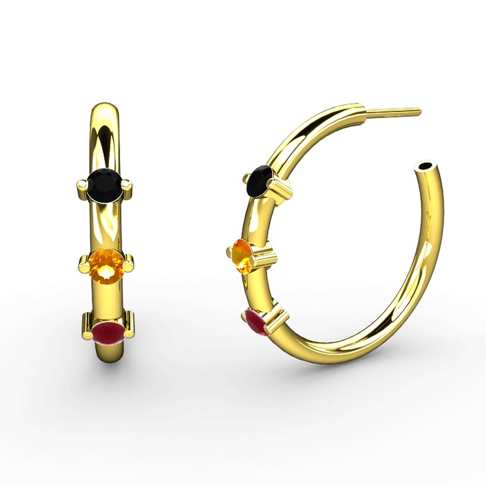 Kök yakut, sitrin ve siyah zirkon 14 ayar altın küpe